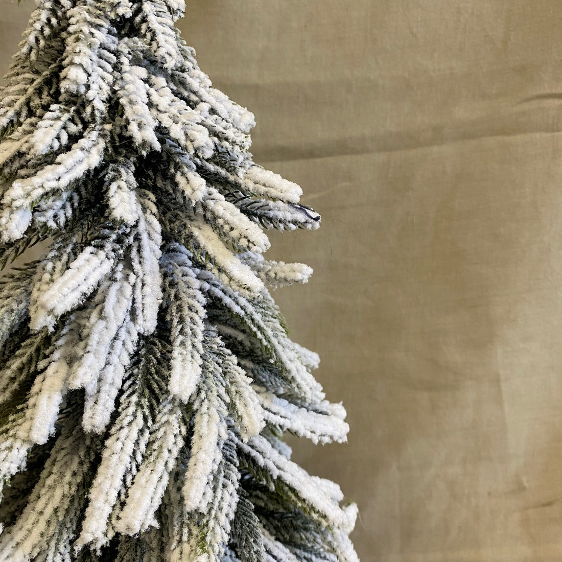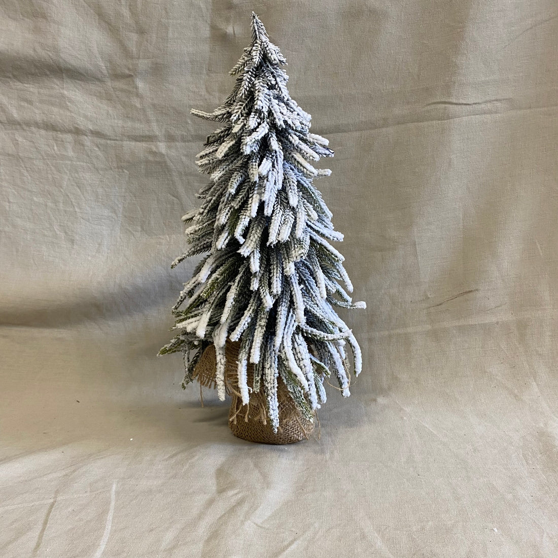Deze besneeuwde kerstboom straalt winterse rust uit. Met z’n jute voet en zachte witte accenten past hij perfect in een sober, warm interieur. Niet van echt te onderscheiden.