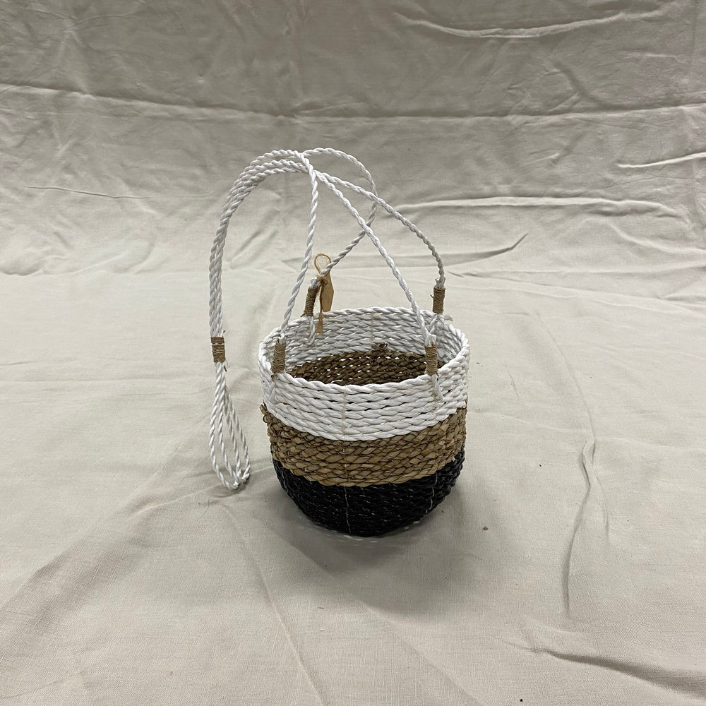 Dit handgemaakte hangmandje uit Indonesië combineert de relaxte Ibiza-stijl met de schoonheid van Wabi Sabi. Gemaakt van natuurlijk zeegras en kunststof, brengt dit mandje een vleugje authenticiteit in elke ruimte.