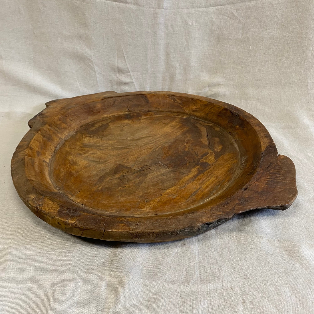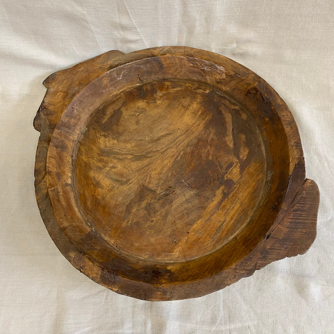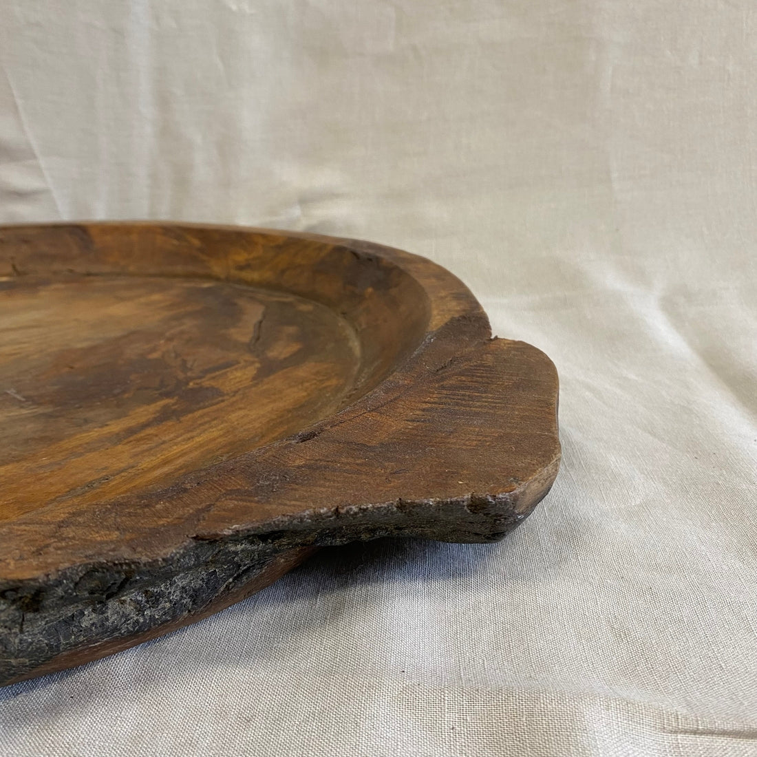 Een handgemaakte houten chapati schaal met een warme, natuurlijke uitstraling. Eenvoud en vakmanschap komen samen in dit tijdloze en functionele stuk.