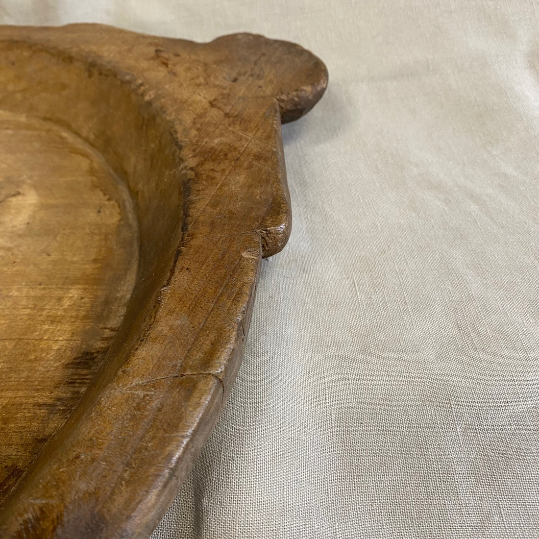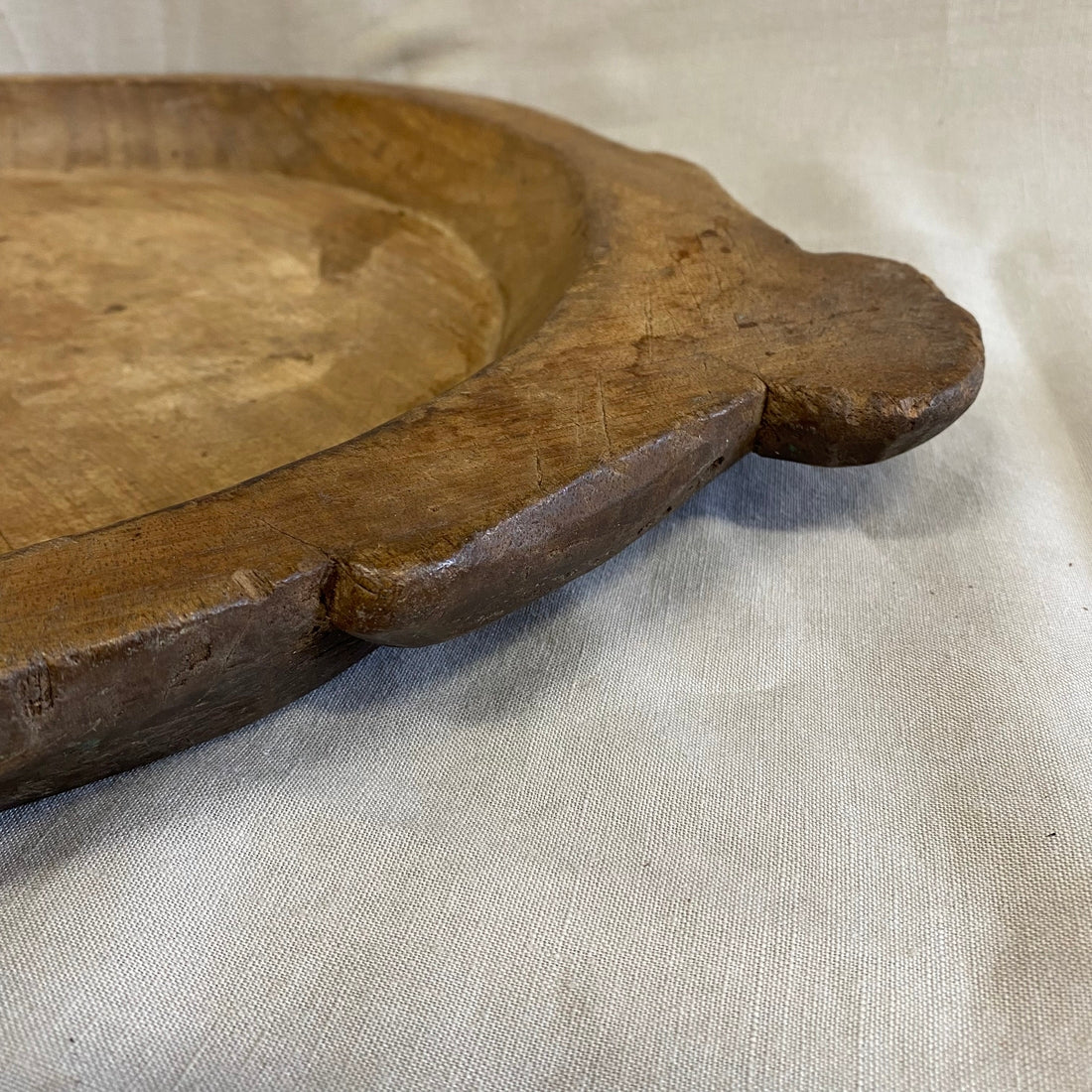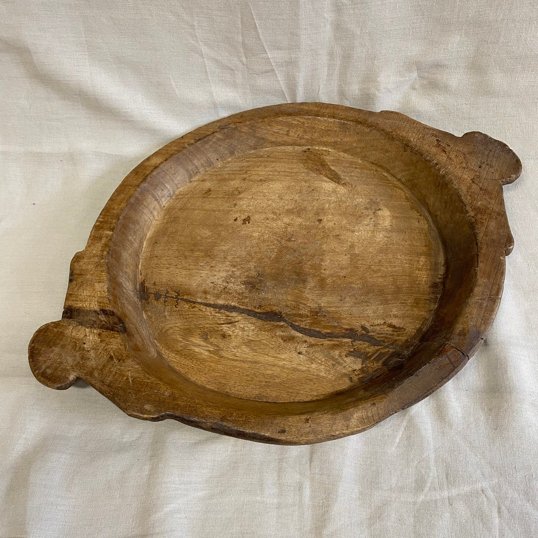 Een handgemaakte houten chapati schaal met een warme, natuurlijke uitstraling. Eenvoud en vakmanschap komen samen in dit tijdloze en functionele stuk.