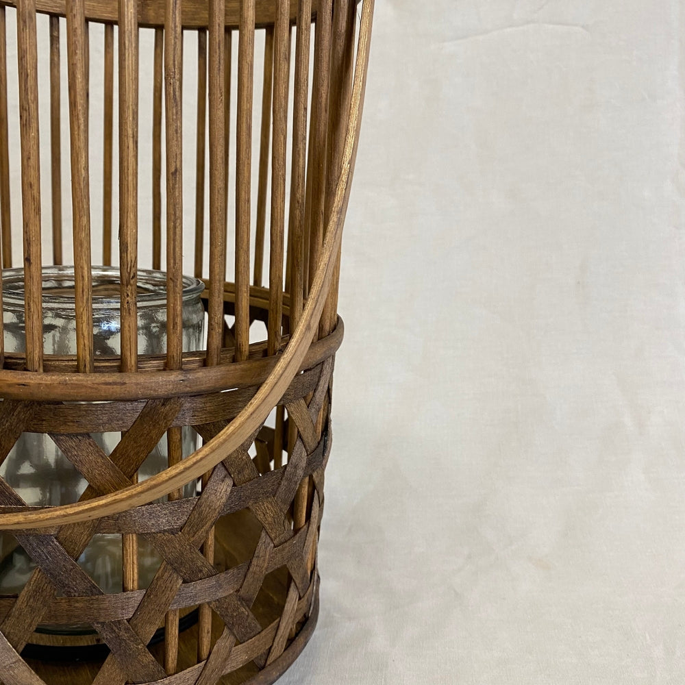 Dit gevlochten rotan windlicht verspreidt een warm en zacht licht. Ideaal voor een gezellige, rustieke sfeer in huis of buiten in de tuin.
