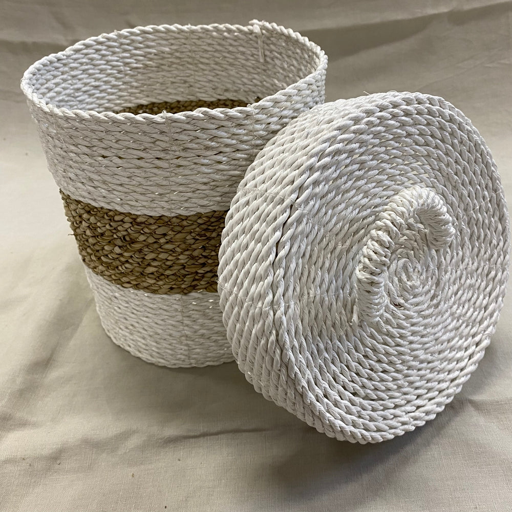Deze handgemaakte manden uit Indonesië combineren de relaxte Ibiza-stijl met de schoonheid van Wabi Sabi. Gemaakt van natuurlijk zeegras, brengen ze een vleugje authenticiteit in elke ruimte.