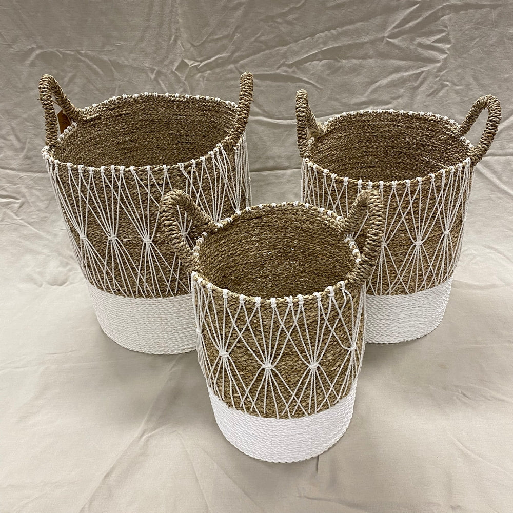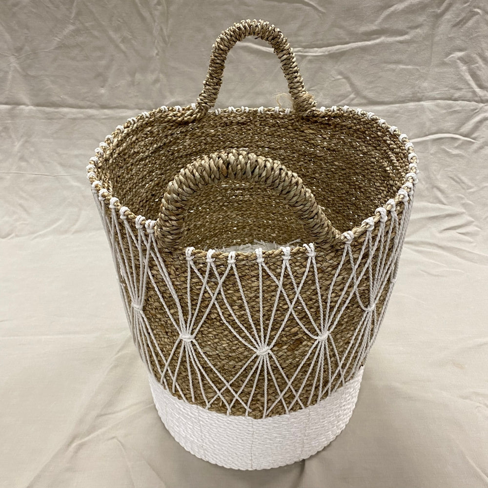 Deze handgemaakte manden uit Indonesië combineren de relaxte Ibiza-stijl met de schoonheid van Wabi Sabi. Gemaakt van natuurlijk zeegras, brengen ze een vleugje authenticiteit in elke ruimte.
