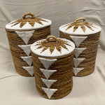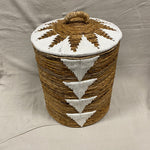 Deze handgemaakte manden uit Indonesië combineren de relaxte Ibiza-stijl met de schoonheid van Wabi Sabi. Gemaakt van natuurlijk zeegras, brengen ze een vleugje authenticiteit in elke ruimte.